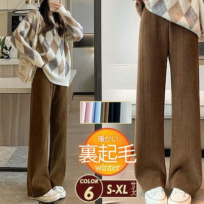 ワイドパンツ レディース ガウチョパンツ 裏起毛 ズボン ボトムス ハイウエスト カジュアル ゆったり 着痩せ イベント 落ち感 コーデ