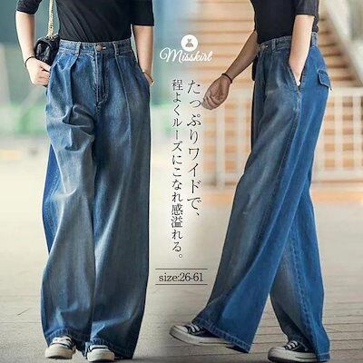 【本日限定 大セール】ワイドパンツ デニムパンツ レディース ロング パンツ ボトムス デニム ジーンズ ガウチョパンツ 体型カバー ロングパンツ 大きいサイズ 春 夏 秋 着痩せ 美脚