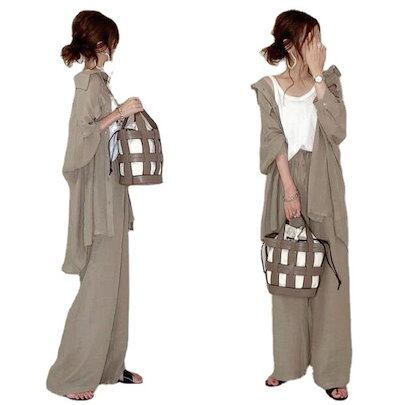 コーデ完成!サロペット 2点セット セットアップ レディース 秋 長袖シャツ ガウチョパンツ 着痩せ 体型カバー 通勤オシャレセットアップ 通勤 オールインワン