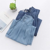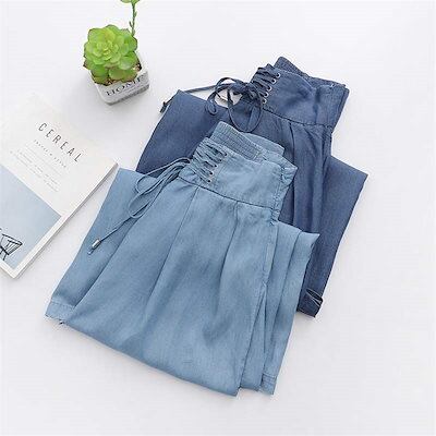 天糸デニムスカンツ薄手プリーツスカートスカーチョ ガウチョパンツ ガウチョ ワイドパンツ レディース デニムパンツウエストゴム シンプル きれいめ /ゆったり天糸デニム広い足のズボンはぶら下が スラッ