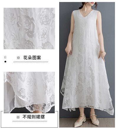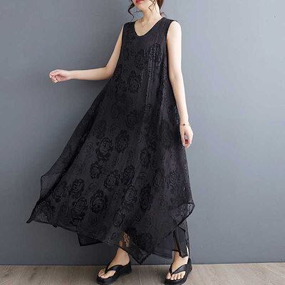「ファットガール」 レースワンピース 裏地付き 2層 柄ワンピース 袖なし ノースリーブ 体型カバー 大きいサイズ ゆったり レディース 福袋 T