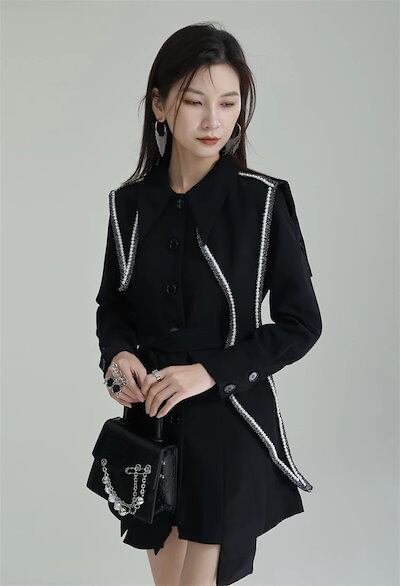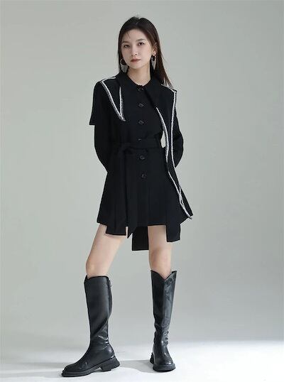 【J.Fashion】 2025春 ドッキング ワンピース ショート丈 黒 関連商品は店で購入可能 福袋 T