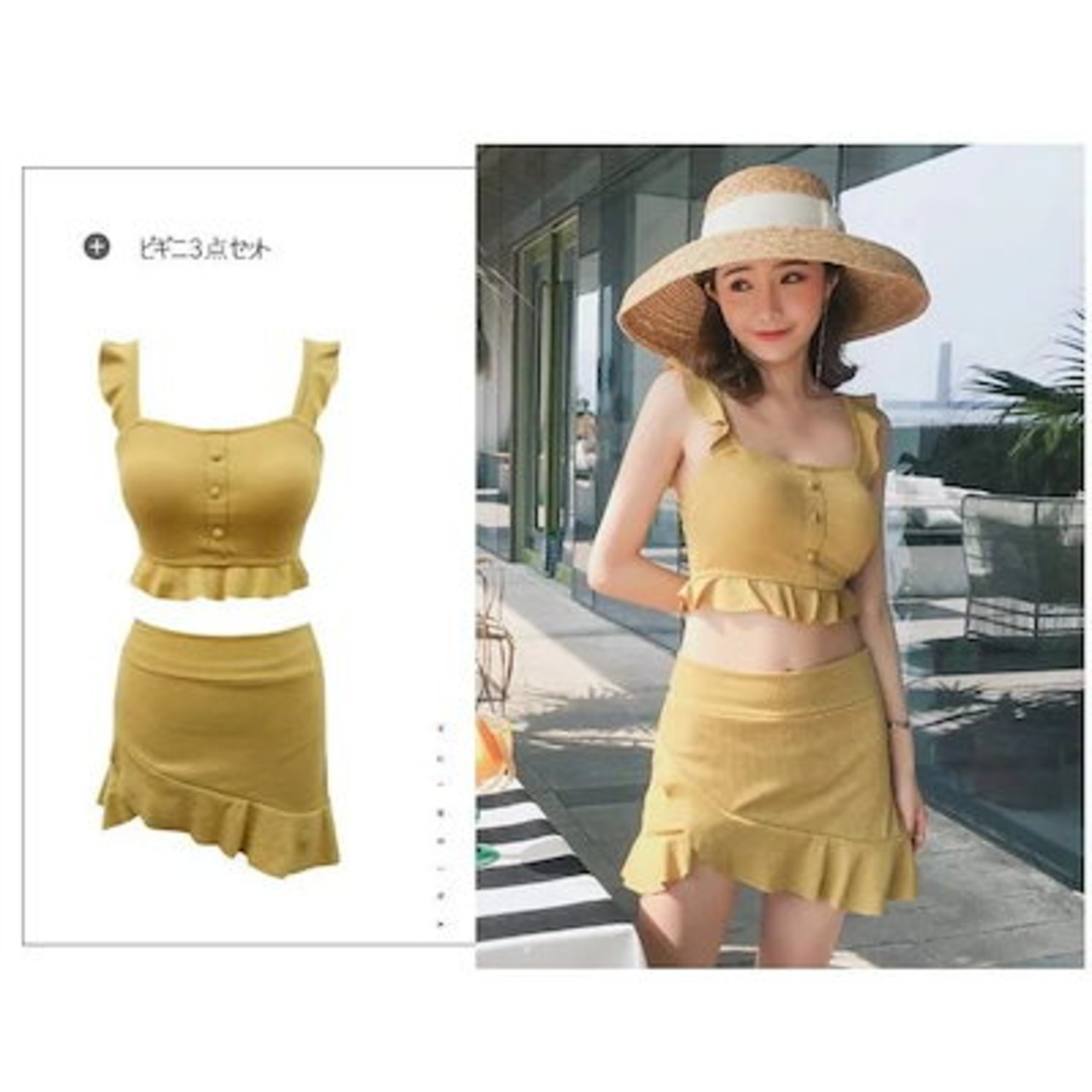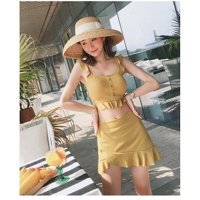 水着レディース 体型カバー 水着3点セット フレアスカート セパレート 三角パンツ 小胸バンドゥビギニ 水着 韓国風 40代 可愛い スイムウェア 温泉 ママ3407 女の子 水着 レディース 可愛い