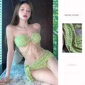 24新作 水着 女性 セクシー ビキニ ラップスカート 3点セット 胸を押し上げてスリムに 二股 三角 リゾート 温泉 女の子 水着 レディース 可愛い 大きいサイズ 大人用 水着 体型カバー ラッシ