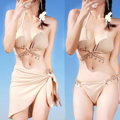 水着女魚ドリル欧米純欲風ストラップ三角ビキニ三点式insセクシー休暇水着 女の子 水着 レディース 可愛い 大きいサイズ 大人用 水着 体型カバー ラッシュガード スクール