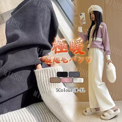 【本日限定】裏起毛 裏ボア ゆったり快適な ワイドパンツ 裏起毛パンツ 韓国ファッション コーデュロイワイドパンツ レッグパンツ