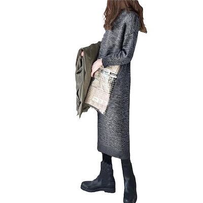 秋冬 新作 厚手 ニットワンピース シンプル おしゃれ ワンピース インナー ロングワンピース 着痩せ 大きめサイズ ワンピース