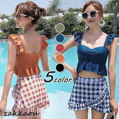 水着2点セット レディース 体型カバー水着 セパレート ドット柄スカート ビキニ 小胸バンドゥ 40代 オシャレ韓国風 可愛いスイムウェア ママ水着 学生 温泉
