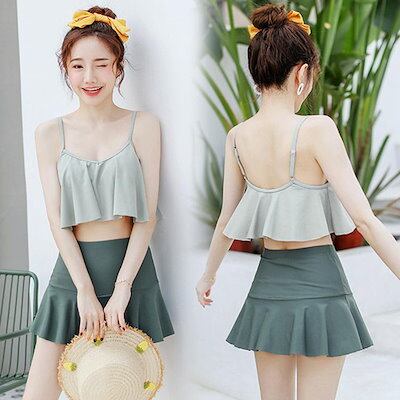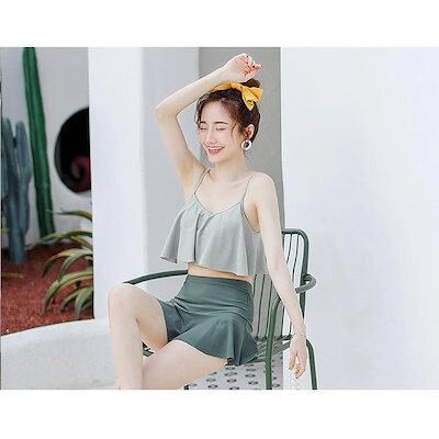 水着2点セット レディース 体型カバー 水着 セパレート キュロット ビキニセット小胸バンドゥ オシャレ韓国風 可愛いセクシー スイムウェア ママ水着 温泉3645