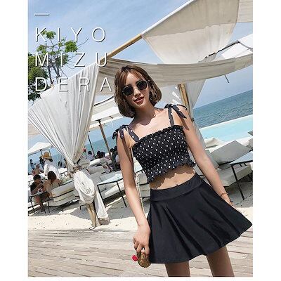 水着2点セット レディース 体型カバー水着 セパレート ドット柄 黒スカート ビキニ 小胸バンドゥ 40代 オシャレ韓国風 可愛いスポーツ スイムウェア ママ水着3651