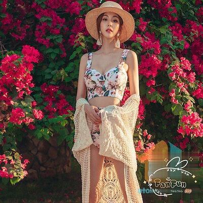 水着 レディース 体型カバー タンキニ ショートパンツ 2点セット フレア パッド付き ワイヤービキニ 花柄 水着