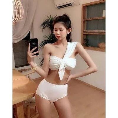 水着 ビキニ レディース 2点セット 体型カバー 可愛い 30代 40代 ワンショルダー ハイウエストパンツ セクシー セパレート 大きいサイズ ツイスト 女の子 水着 レディース 可愛い 大きいサイ