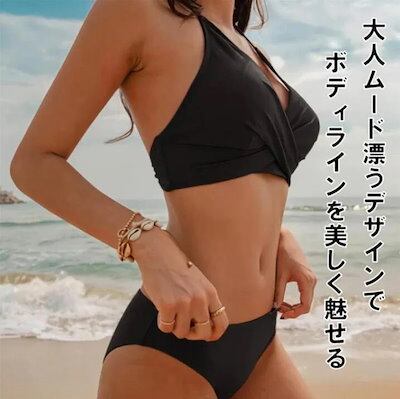 水着 レディース ビキニ セクシー ホルターネック 胸パッド ワイヤーなし クロス セパレート ビーチ 盛れる 2点セット 女の子 水着 レディース 可愛い 大きいサイズ 大人用 水着 体型カバー ラ
