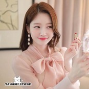 リボン ボウタイ シフォン ブラウス 長袖 レディース トップス フェミニン ガーリー 妖精 ピンク 大きいサイズ 3L 韓国 ファッション 春 秋