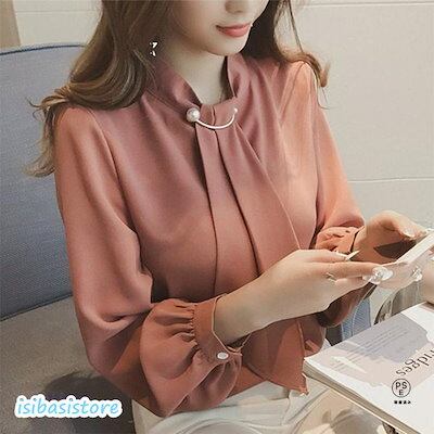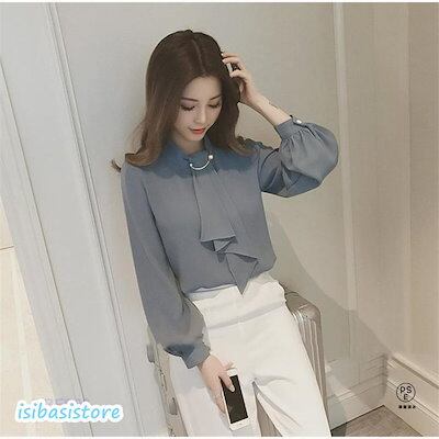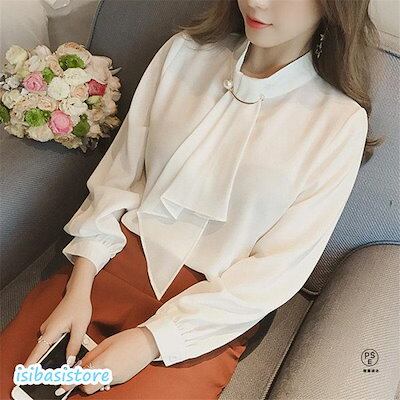 3月の販促!!シャツ ブラウス 春夏 秋 シフォン レディース 長袖 ボリューム袖 リボンシャツ オフィス トップス 通勤 スーツ インナー ビジネス 入学式