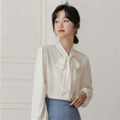 ブラウス レディース トップス シャツ 白シャツ ボウタイカラー インナー スーツインナー ビジネススーツ 春夏 秋冬 長袖 きれいめ ボウタイ リボン リボンタイ ボウタイリボン 洗濯可 シーズン着