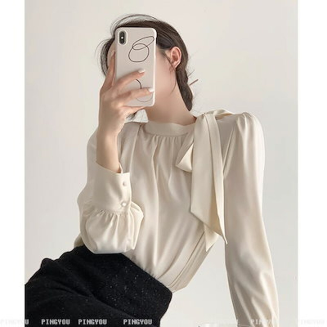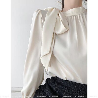 ブラウス 襟 スタンドカラー レディース リボン フォーマル 華やか 立ち襟 長袖 おしゃれ ボウタイブラウス シャツ シンプル 手洗い可能 ベーシック フェミニン 上品 大人 オフィス ビジネス 入