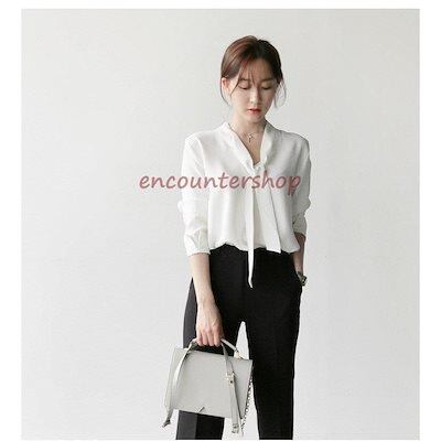 品質いいな新品 ブラウス レディース レディースシャツブラウス シフォンブラウスシャツ オフィスシャツ カジュアルビジネス トップス 白 リボン付き フォーマル 無地 シンプル