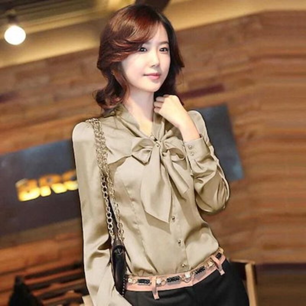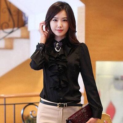 シャツ ブラウス レディース リボン トップス フリルブラウス 長袖 無地 エレガント オフィス 落ち感 魅力 お洒落 プルオーバー