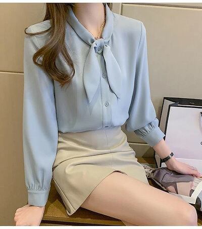 ブラウス レディース シフォンシャツ きれいめ 長袖 トップス リボンネック 大人 通勤 ゆったり シャツ カジュアル 韓国風 オシャレ 20代 30代 40代 春 夏 秋 新作