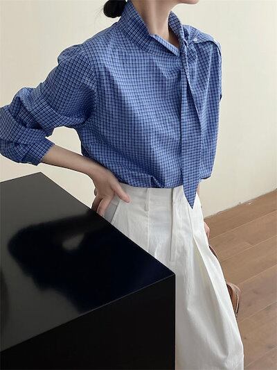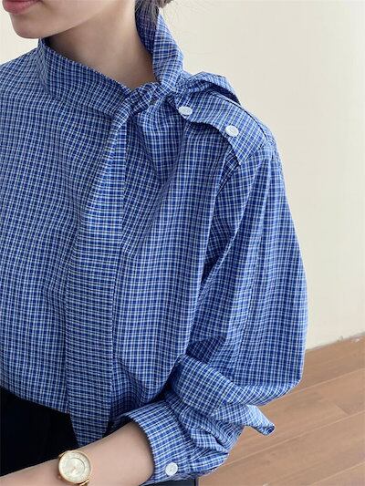 スカーフネック ブラウス きれいめ 長袖 レディース 春秋 秋冬 キレイめ トップス シャツブラウス フォーマル オフィス アシメ リボン リボンタイ スタンドカラー スカーフタイ チェック柄 ブラウ