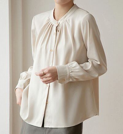 シャツ ボウタイ ブラウス 長袖 レディース オフィスシャツ リボン付き 取り外し可能 2way 長袖シャツ シーズインナー ボウタイシャツ ゆったり ギャザー バンドカラーシャツ 大きいサイズ 滑る