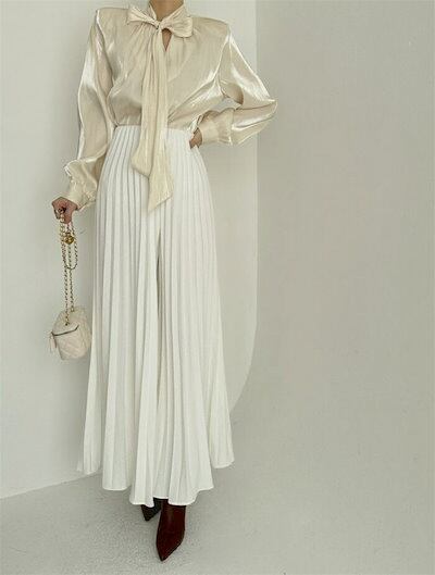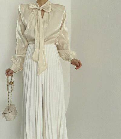ボウタイブラウス ブラウス レディース きれいめ 長袖 フォーマル 春秋新作 オシャレブラウス 光沢感シャツ 長袖トップス リボンネック 上品 大人 通勤 ゆったり シャツ 通勤 OL エレガント 3