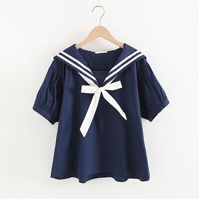 セーラーカラー シャツ ブラウス レディース 半袖 綿100% tシャツ 無地 ストライプ リボン付き シャツブラウス 半袖 春 夏 Tシャツ レディース 半袖 カジュアル ゆったり 大きいサイズ シ