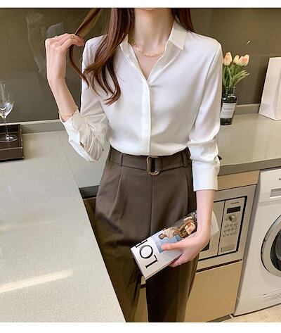 シャツ ブラウス レディース プルオーバー 長袖 トップス ゆる シャツ カジュアル フォーマル シンプル 普段着 通勤 OL リボン 夏 春 秋