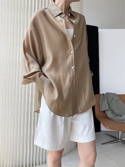 シャツ レディース 長袖 春 夏 春夏 シャツブラウス レディースシャツ 長袖シャツ 無地 透け感 薄手 シアー リボン 可愛い カワイイ 若見え エレガント レイヤード 着回し UV対策 日焼け止め