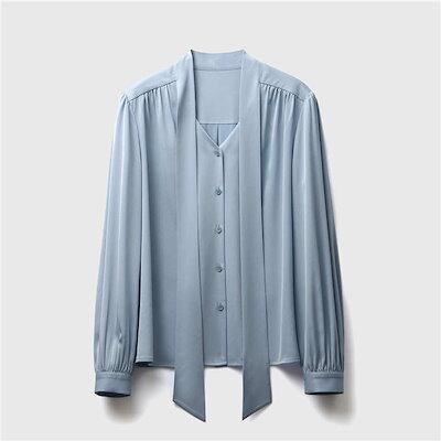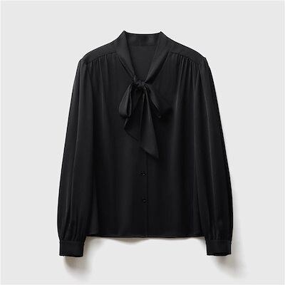 ボウタイ シャツ ブラウス レディース 春秋 秋冬 長袖 キレイめ トップス シャツブラウス フォーマル オフィス リボン 結びリボン 結び襟 リボンタイ サテン ブラウス 着まわし ボウタイリボン