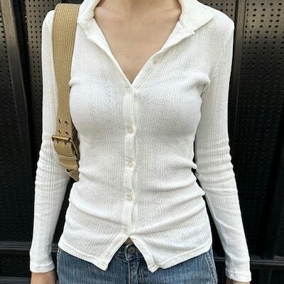 2025 春夏トップス シャツ ブラウス 長袖おしゃれ ウエストシェイプ白 ゆったり 細見え かわいい フレンチカラー甘め おしゃれ丈韓国ファッションリブレディースフルシルエットサイズお出かけ