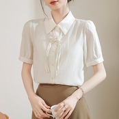 今っぽシアーシャツ 夏先取りブラウス シャツ シックなファッション レディース 半袖 夏 新作 韓国製 ボタン ホワイト ブラウス トップス 韓国ファッション
