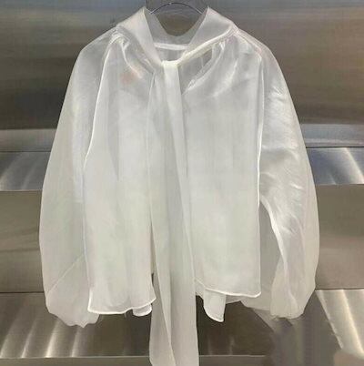 ブラウス ボリューム袖 レディース 長袖 秋 春 冬 トップス シャツ レディース 長袖 きれいめ オフィスカジュアル 無地 春夏 リボン つや感 シースルー リボンカラー ママコーデ 韓国 韓国フ