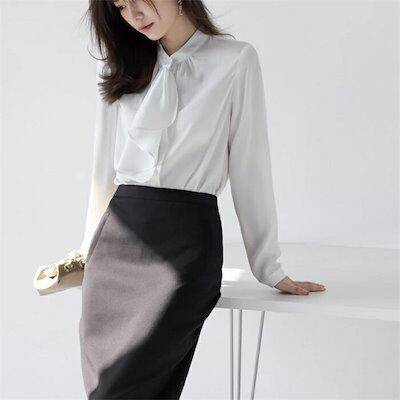 ブラウス シャツブラウス レディーストップス シャツ 春秋 長袖 長袖ブラウス 春 夏 オフィス ボウタイ 白ブラウス リボンブラウス 春ブラウス 春夏シャツ 可愛い お出かけ エレガント フレア 大