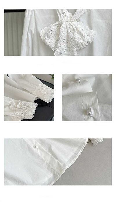 綿 ブラウス レディース フォーマル 長袖 秋 春 コットン レース シャツブラウス シャツ ブラウス 女性らしい リボン オフィス 無地 ファション トップス きれいめ カジュアル 長袖シャツ 体型