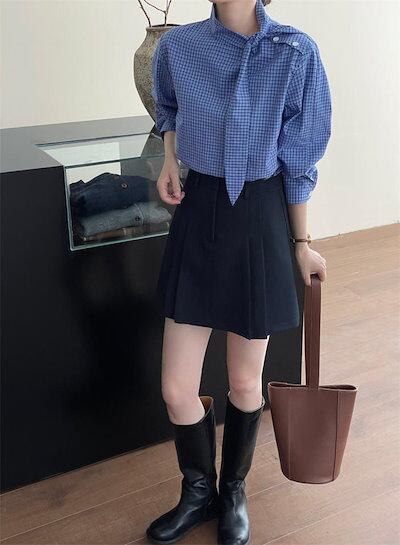 スカーフネック ブラウス きれいめ 長袖 レディース 春秋 秋冬 キレイめ トップス シャツブラウス フォーマル オフィス アシメ リボン リボンタイ スタンドカラー スカーフタイ チェック柄 ブラウ