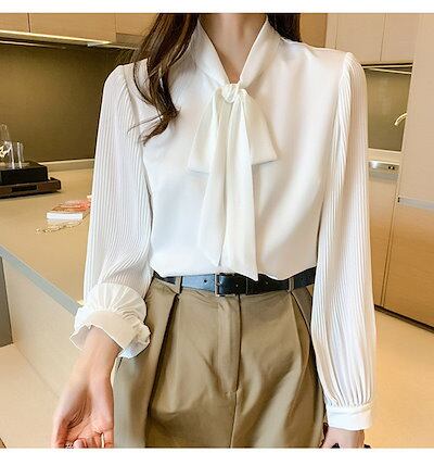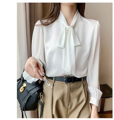 ボウタイブラウス 長袖 ブラウス レディース 白 ボウタイ ブラウス リボン トップス シャツ スーツインナー おしゃれ ゆったり カジュアル キレイめ オフィス 着?せ 大人 可愛い 通勤 ビジネス