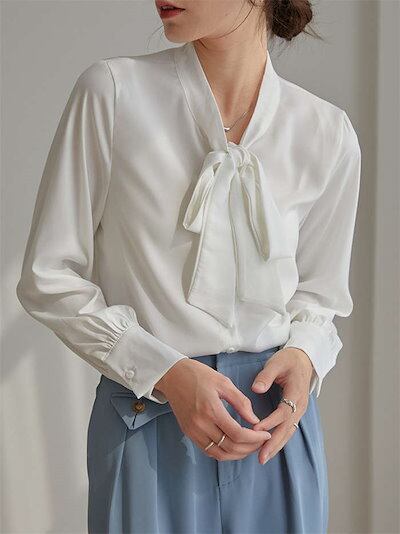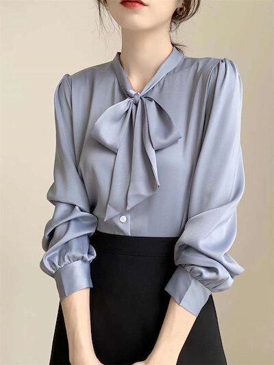 ボウタイブラウス ブラウス シャツ 白シャツ インナー レディース トップス スーツインナー ビジネススーツ 春夏 秋冬 ボウタイカラー 長袖 ボウタイ リボン リボンタイ ボウタイリボン カジュアル
