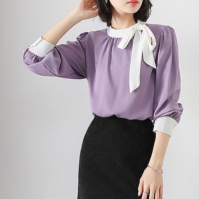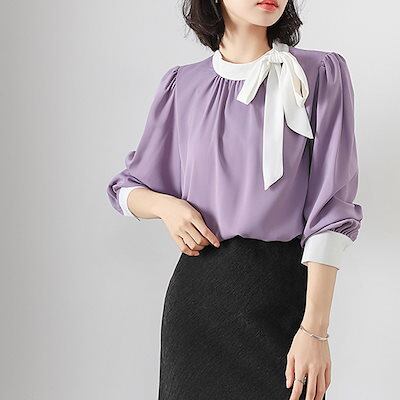 リボン 立ち襟弓シフォンシャツレディース2025春長袖ブラウス