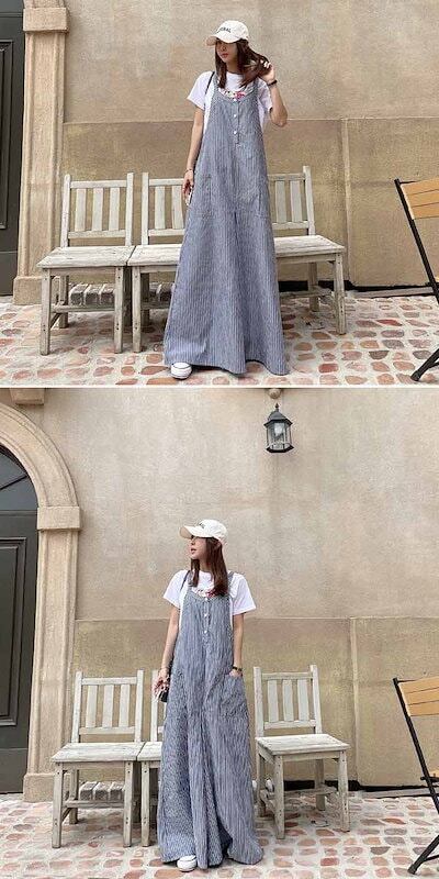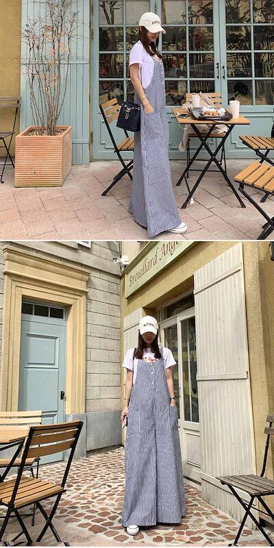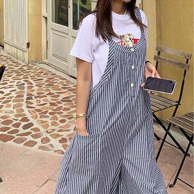 サロペット パンツ レディース オールインワン 大きいサイズ 春 夏 きれいめ オーバーオール ワイドパンツ ワイド コンビネゾン つなぎ ゆったり 長ズボン シンプル ストライプ キャミワンピ
