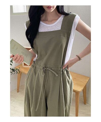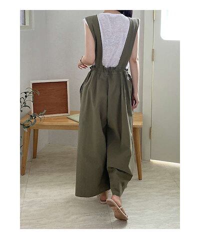 サロペット レディース 春 夏 リネン 綿麻 ゆったり オールインワン つなぎ オーバーオール パンツ ワイドパンツ ロングパンツ ワイド ロング クルーネック コットン ポケット付き 無地 涼しい