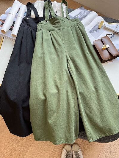 サロペット レディース オーバーオール オールインワン 春 夏 秋 無地 サロペットパンツ つなぎ ガウチョパンツ ゆったり 体型カバー フリーサイズ シンプル ロング丈 膝下 ワイドパンツ 綿 コ