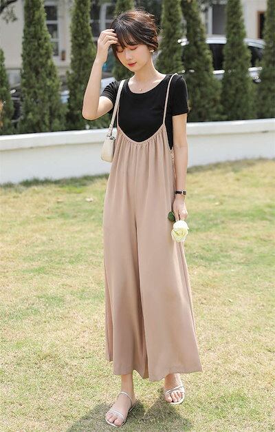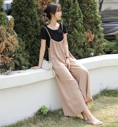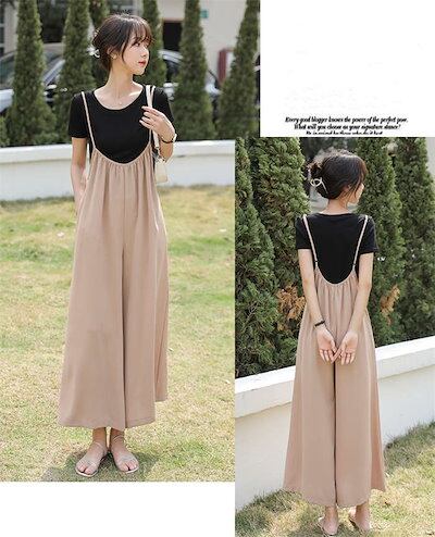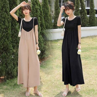 キャミソールサロペット レディース ワイド サロペット オールインワン パンツ 春 夏 秋 綿麻風 無地 着回し つなぎ ロング丈 ギャザー オーバーオール レトロ 薄手 ゆったり 可愛い ワイドパン