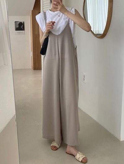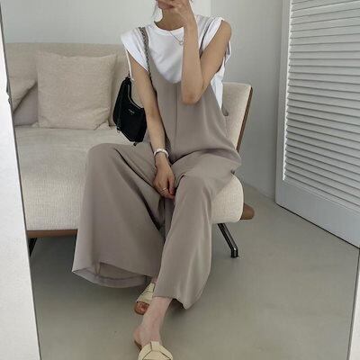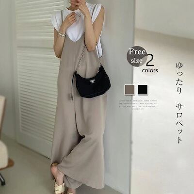 オールインワン サロペット パンツ レディース 春 夏 大人 無地 Vネック オーバーサイズ ワイドパンツ オーバーオール コーデ 体型カバー 着?せ カジュアル シンプル おしゃれ ゆったり 秋 コ