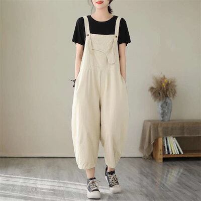 サロペット レディース ゆったり 春 夏 オールインワン つなぎ オーバーオール 大人サロペット サロペットパンツ パンツ ロング 綿 コットン 涼しい カジュアル 楽ちん 無地 ポケット付き 高見え