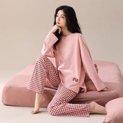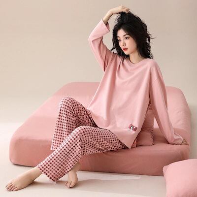 2025 春 夏 パジャマ ルームウェア セットアップ チェック柄 長袖 可愛い ロングパンツ 上下セット 部屋着 レディースファッション