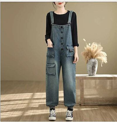 サロペット パンツ レディース 春 オールインワン ノースリーブ ワイドパンツ デニムパンツ デニムワイドパンツ デニム ロング丈 ポケット付き ゆったり 体型カバー 大きいサイズ ナチュラル カジュ