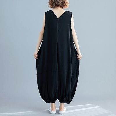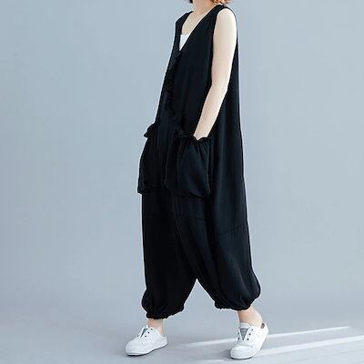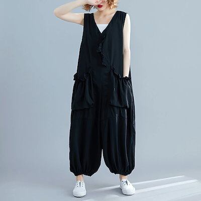 サロペット パンツ 大きいサイズ レディース Vネック オールインワン 無地 薄手 ゆったり カジュアル きれいめ パンツ オールインワン 春夏 お呼ばれ カジュアル 普段着 女性らしい お洒
