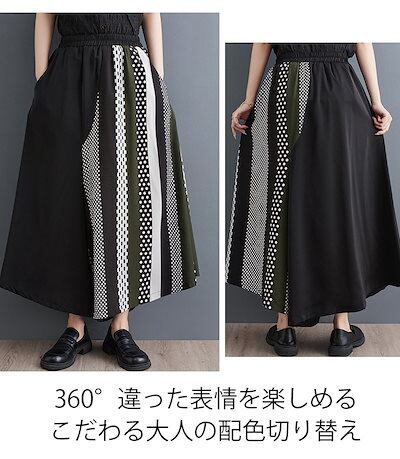 パンツ ガウチョパンツ レディース 春 スカーチョ ボトムス ワイドパンツ きれいめ 大きいサイズ ロングパンツ 九分丈 ロング丈 パンツ フレア 異素材 切り替え デザイン 総ゴム ゆったり 体型カ